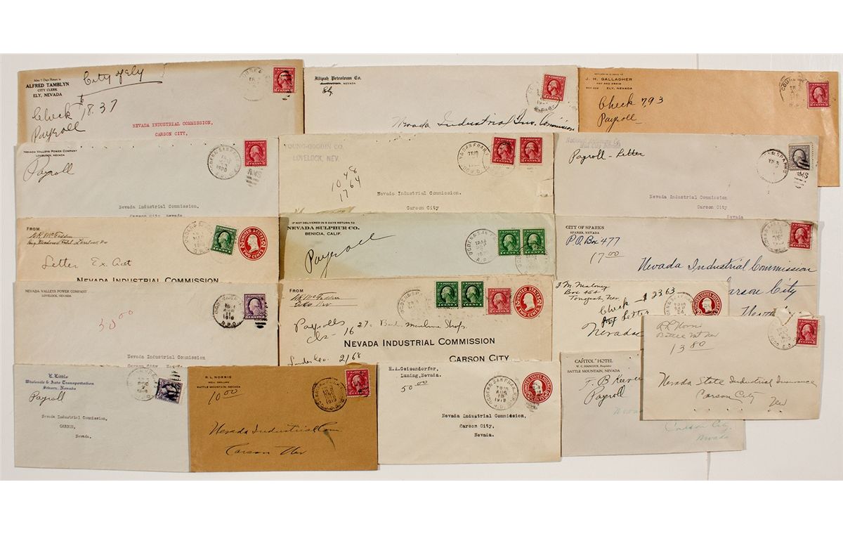 c1918 This is a lot of 16 RPO's from various parts of eastern Nevada, including Ely, Schurz, Lovelock, Battle Mountain etc. All are in good condition. These are from former Nevada State Treasurer Dan Franks' collection. - HKA#66048