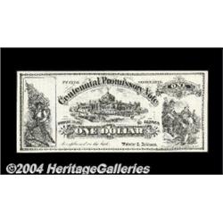 East Port, NY- Webster S. Robinson $1 Ad NoteA great Long Island, NY Ad Note, on a form we've never seen used elsewhere, as this 1876 issue is dubbed a "Centennial Promissory Note" and features appropriate Revolutionary War vignettes. The text on the back notes that "The recent reduction in the prices of our boots and shoes bring them within the reach of many who have been barefoot all their lives," showing the contrast between the Long Island of 1876 and the Long Island of today. Uncirculated. <BR><BR><B>Important notice:</B> Heritage usually auctions material at the rate of 200-250 lots per hour. On some occasions eBay Live bid software or the Internet may not be able to keep up with the pace of the auction. We recommend placing a realistic absentee bid now as insurance to avoid disappointment. Occasionally the auctioneer may eliminate or reject an eBay Live bid, and the auctioneer may also reopen a lot after the close of the eBay live bidding (usually because we missed an audience bid), and may reject your bid even if it shows you as the winning bidder. By bidding via eBay Live, you agree that Heritage may award the lot to another bidder at its sole discretion under the circumstances described above or any other reasonable circumstances. Since eBay bids are not shown to us until we open the lot on the floor, we treat those bids just like floor bids. In most cases the floor responds before the eBay bid is presented to us, due to Internet lag time, so for consistency we have made it a policy that floor bids are always considered first over tie eBay live bids. Also please note that all Heritage lots purchased through eBay Live carry a 20% Buyer's Premium. Please make sure you read the Terms and Conditions before you bid. <BR><BR><B>IMPORTANT ANNOUNCEMENT ABOUT RESERVES:</B> Heritage now divulges all reserves on its web site 7 days before every auction. If you want to know whether the reserve on this lot has been met, and if not, what the reserve amount is, please visit this lot page on the HeritageCoin.com web site, or email: bid@HeritageGalleries.com