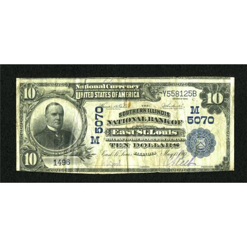 <B>East Saint Louis, IL</B></I> - $10 1902 Plain Back Fr. 632 <B>The Southern Illinois NB</B></I> Ch. # (M)5070<BR> The paper quality is pleasing on this piece that was cut a little unevenly. Part of the B plate position note is noted in the top margin. <B>Fine-Very Fine.</B></I><BR><BR><b>Shipping:</b> Coins & Currency (<a target="_blank" href="http://www.heritageauctions.com/common/shipping.php">view shipping information</a>)