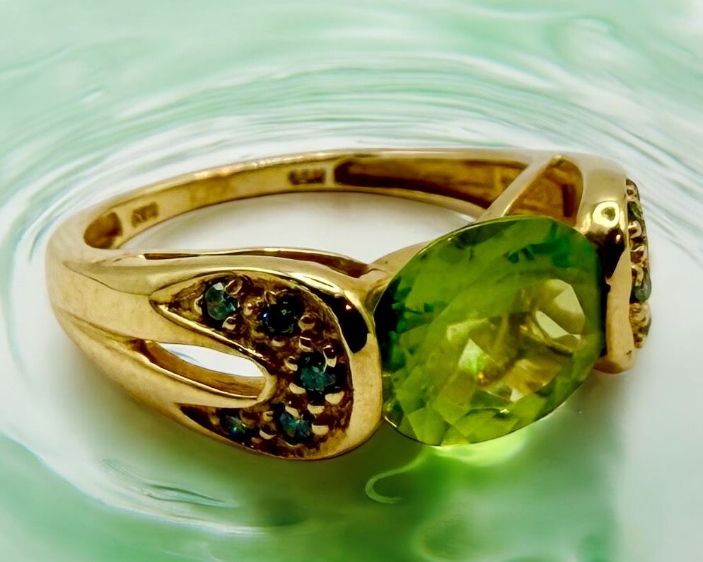 14K Yellow& nbsp; & nbsp; & nbsp;3.93g& nbsp; & nbsp; Peridot/2.50 CT& nbsp; & nbsp; & nbsp; & nbsp; & nbsp;Yellow-Green& nbsp; & nbsp; & nbsp; & nbsp; & nbsp;Unknown& nbsp; & nbsp; & nbsp; & nbsp; & nbsp; & nbsp; .10ctw/Blue-SI2& nbsp; & nbsp; & nbsp; 7