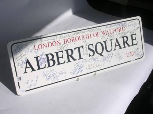 Eastenders plastic street sign with cast Autographs to include Barbra Windsor