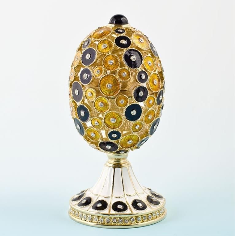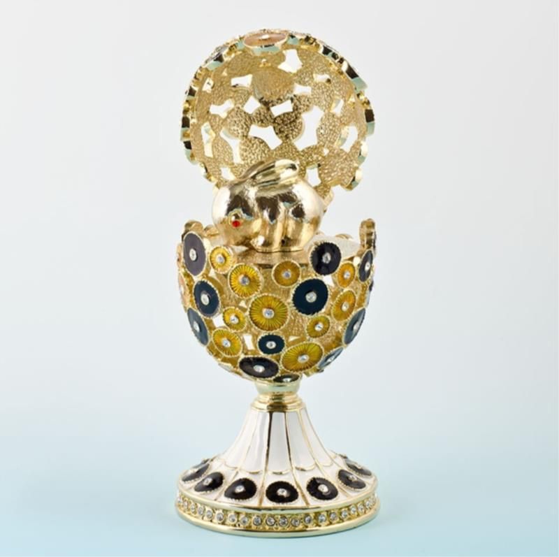 Dimensions: 5" (H) Pewter, Enamel, Crystals Faberge is a trademark of Pallinghurst Resources LLP. This piece of art should not be associated with Pallinghurst Resources LLP, Faberge Limited Co. who acquired the Faberge trademark in 2007. This item is an exacting replication of a piece of priceless value.