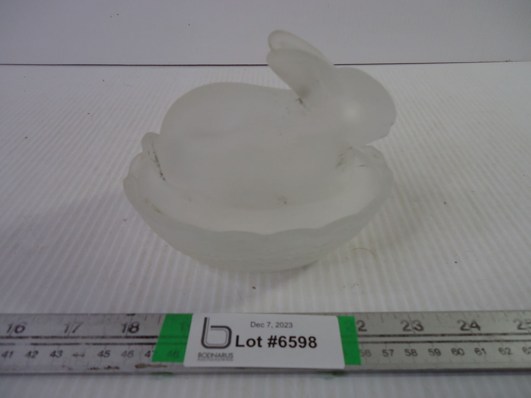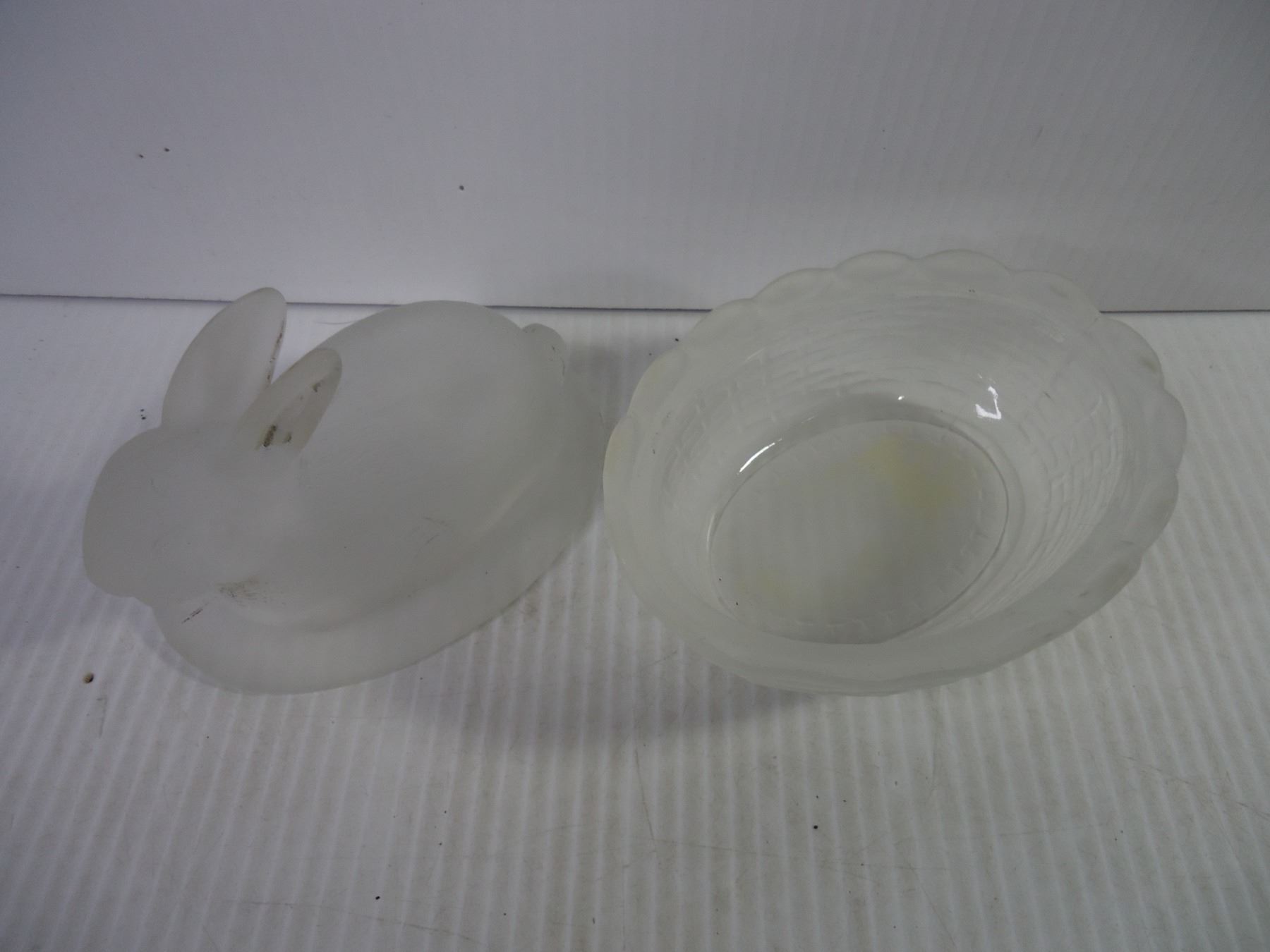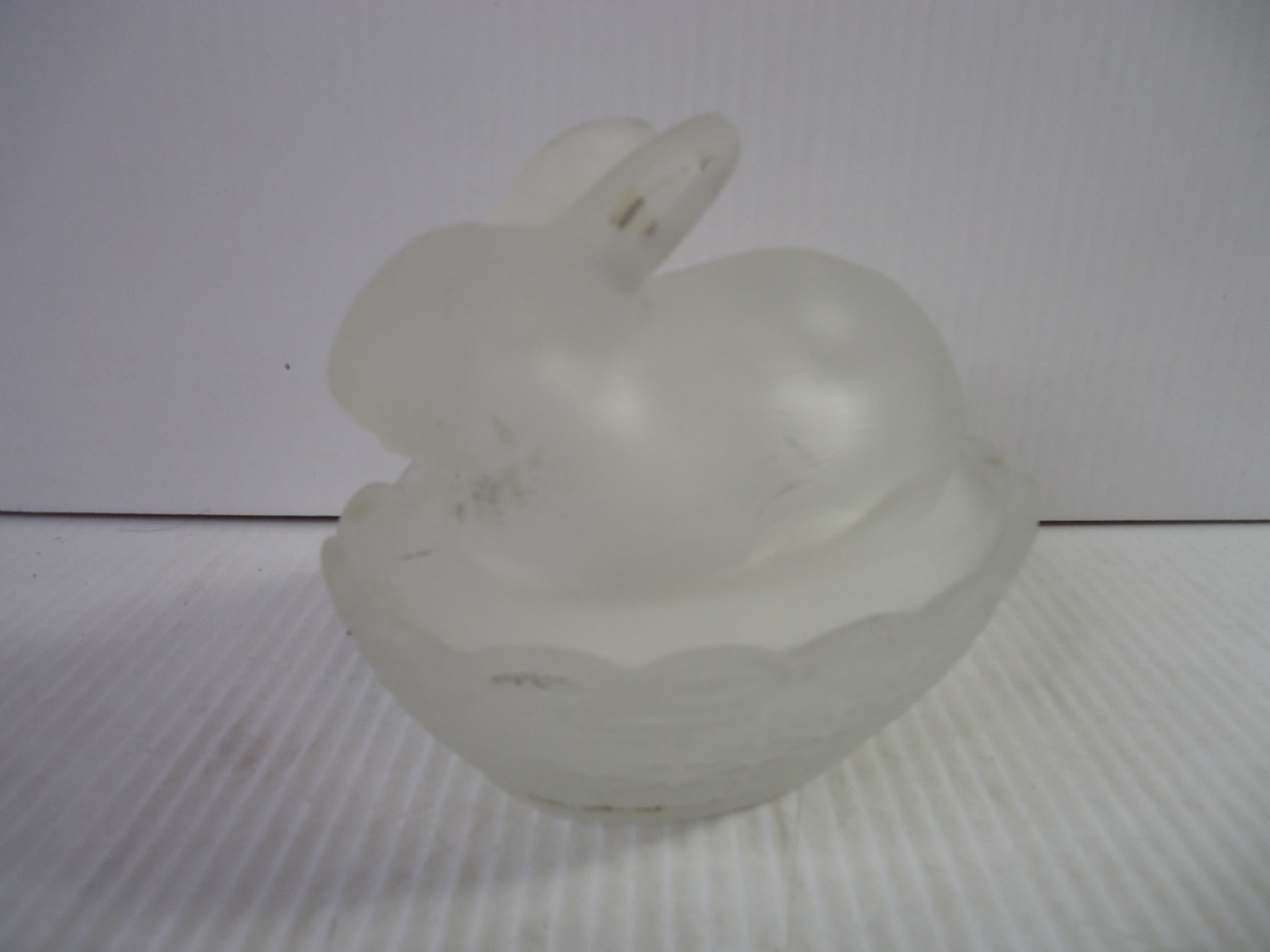 Easter Frosted Glass Rabbit on a Nest Candy Dish