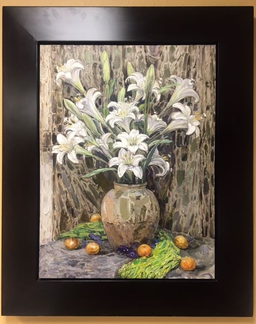 Easter Lilies by Zin Original Oil on Canvas Framed