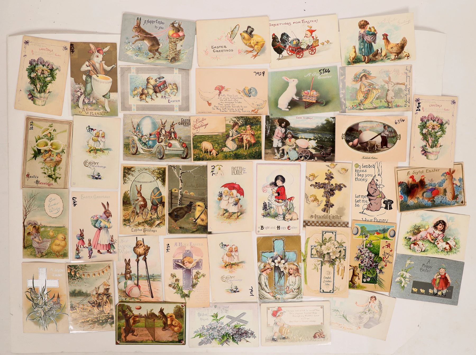 About 40 c. 1909-19 Easter postcards with children, bunny, chicks, car etc.