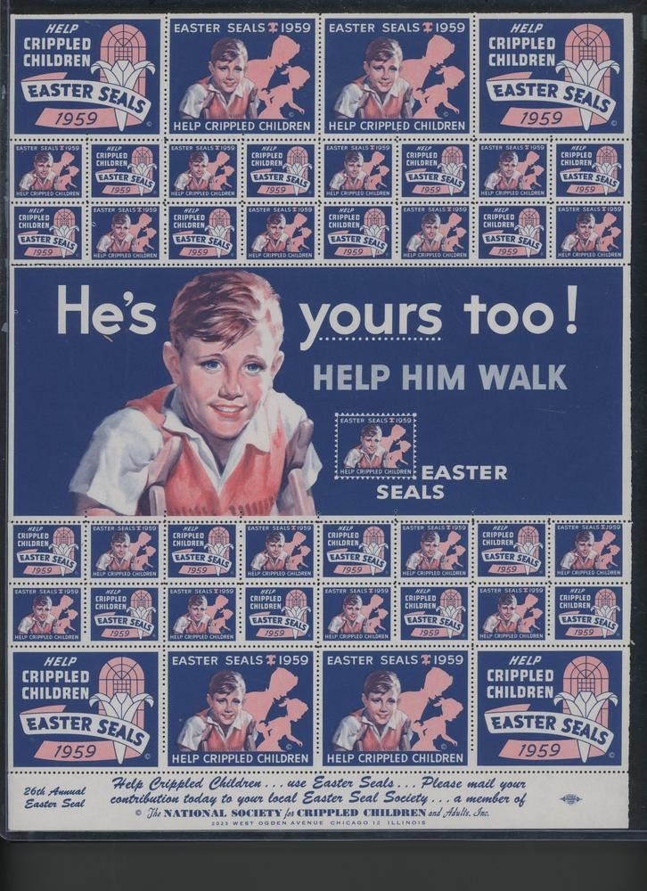 Easter Seals Help Crippled Children Stamp Sheet 1959