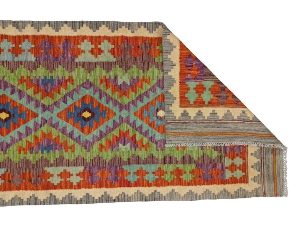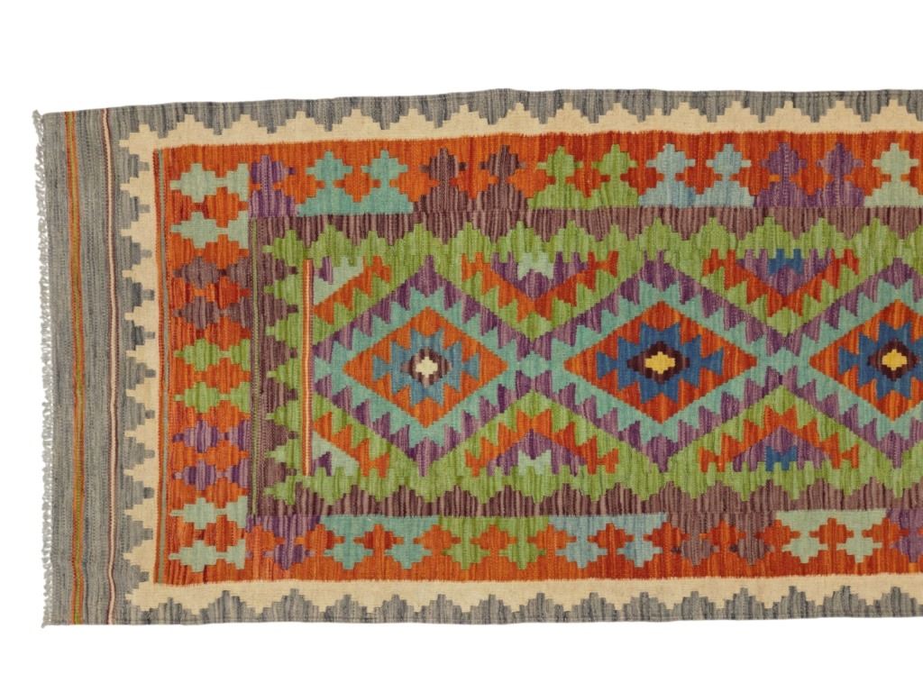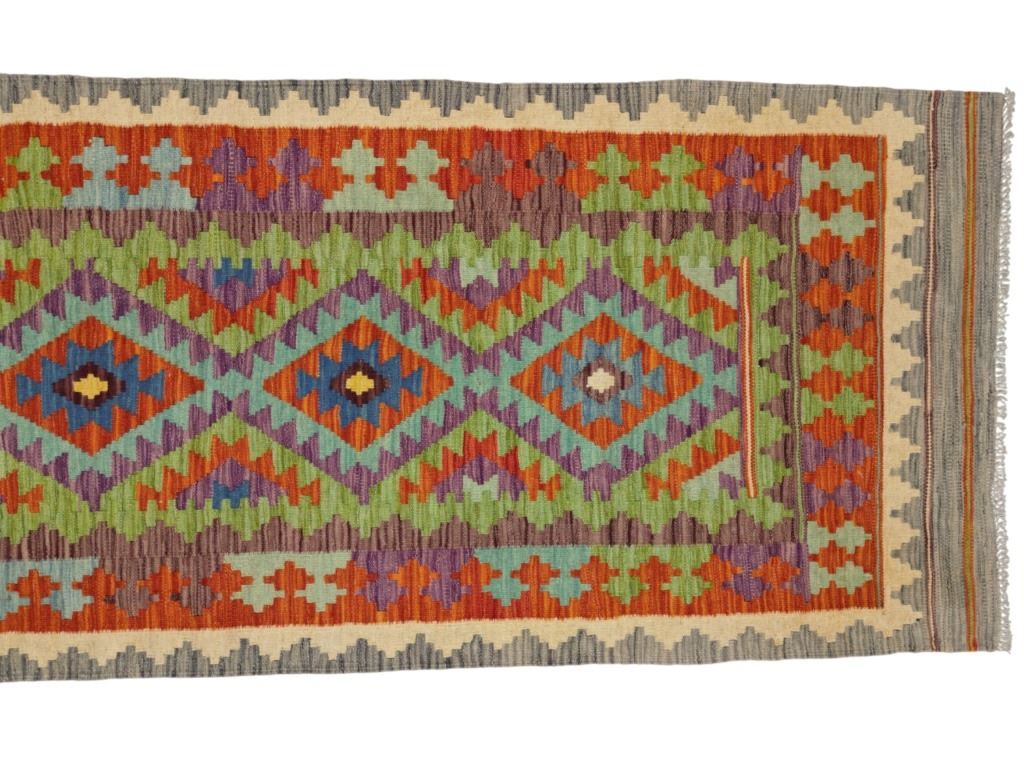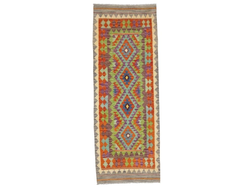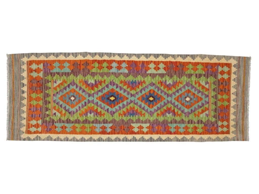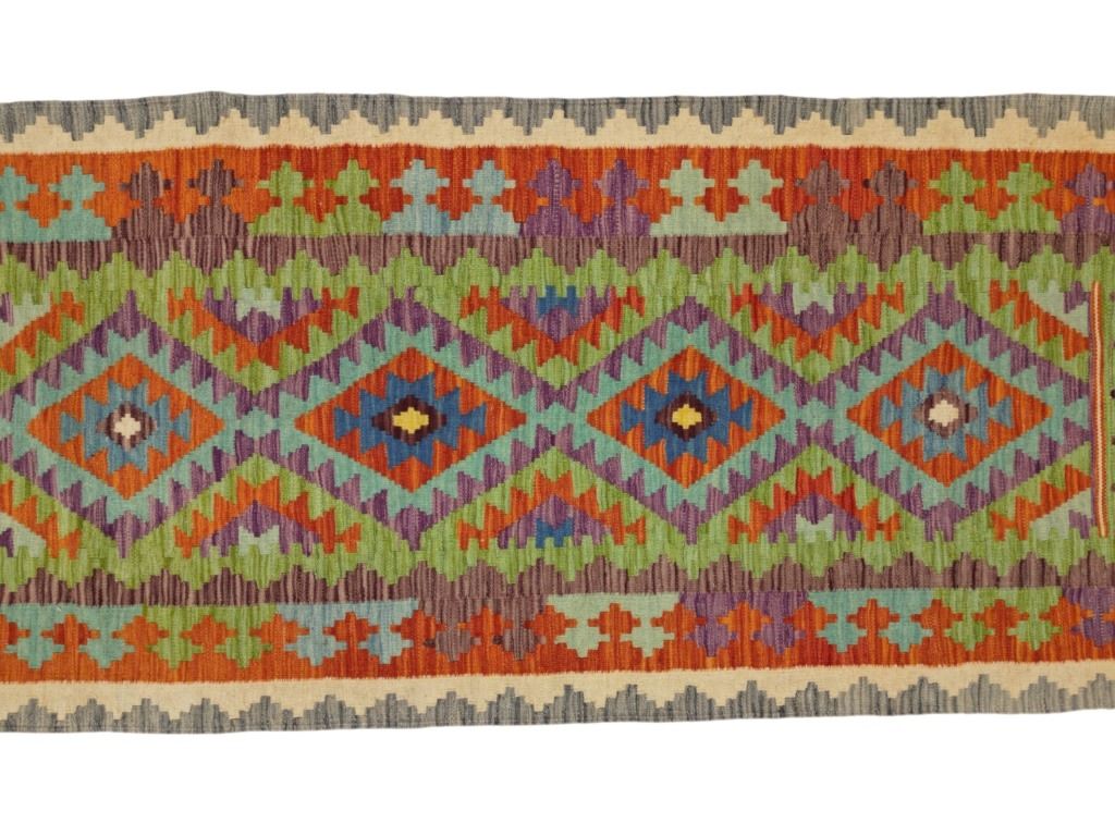 For your consideration is this beautiful, hand woven Eastern Anatolian Caucus Tribal Kilim rug from the 1950s - 1960s. This rug features a wonderfully and professionally handcrafted wool construction that features medallions of geometric motif patterns throughout and naturally dyed colours such as sage green, heather red, pink, light blue, saffron yellow, light purple and orange. Anatolian motifs represent desires, such as for happiness and children; others, for protection against threats such as wolves (to the flocks) and scorpions, or against the evil eye. The region of Eastern Anatolia borders the Caucasian republics that recently gained independence from the now-defunct Soviet Union; it also abuts Iran, formerly known as Persia. The region has experienced Turkish influence in addition to Kurdish, Azeri, Armenian, Russian and Iranian influence to a greater or lesser degree, some of which is evident in the designs and coloring of weavings made here. The condition of this kilim rug is good with no obvious signs of damage and shows good overall condition. It measures 96" L x 36" W and weighs 7 pounds and 4 ounces.