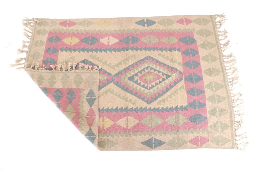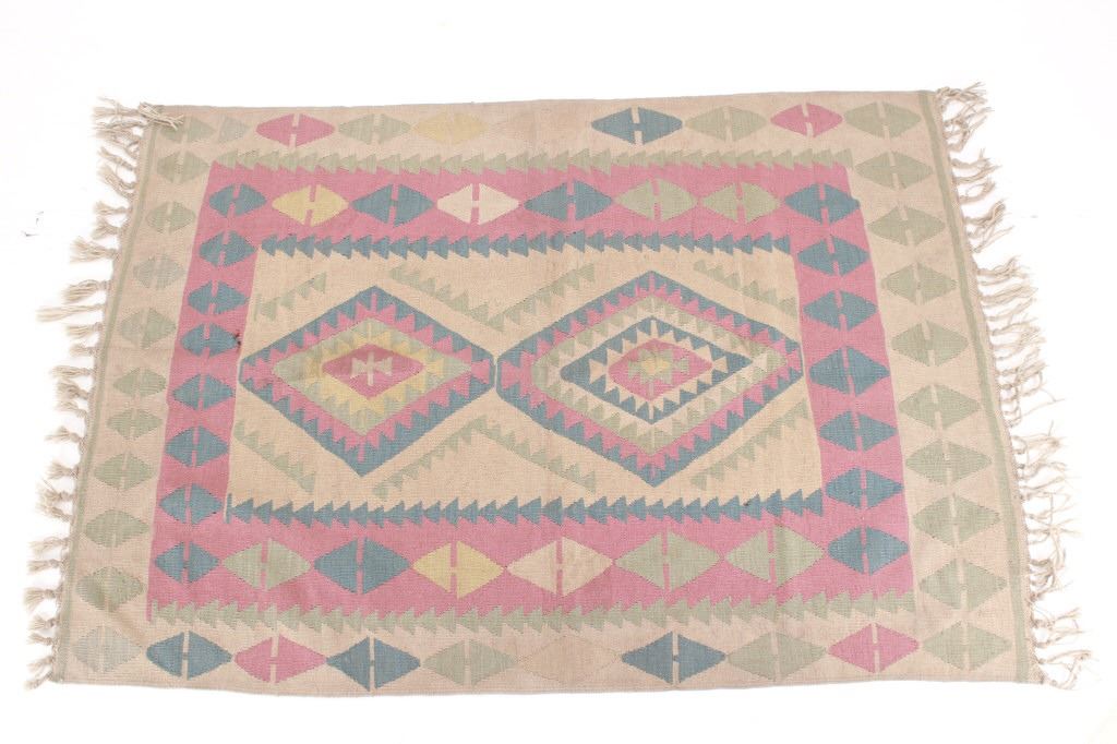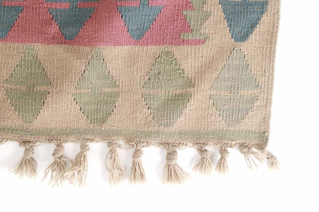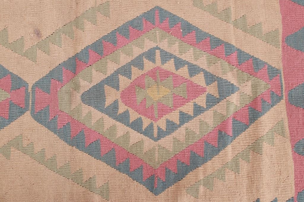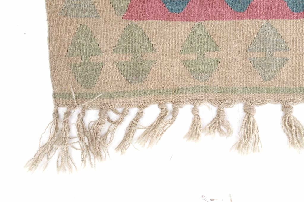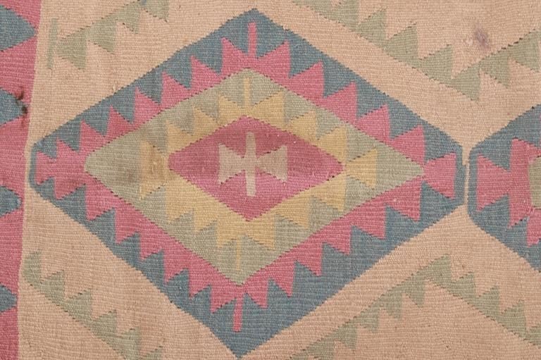 Featured in this lot is this Eastern Anatolian Caucus tribal Kilim circa 1900's. The rug features a wonderfully and professionally crafted pile woven wool construction. The Kilim features two central multi rowed central medallion that shows coloration of of blue, green, and red coloration and shows a light brown field. The border features merged triangular patterns set top to top and bottom to bottom in corresponding colors. The condition of this Anatolian Kilim is good with no obvious signs of damage and shows good overall condition. The measurements of this Kilim is 73"x 47".