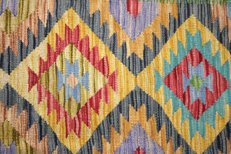 Featured in this lot is this Eastern Anatolian tribal Caucus Kilim circa 1930s. The region of Eastern Anatolia borders the Caucasian republics that recently gained independence from the now-defunct Soviet Union; It also abuts Iran, formerly known as Persia. The region has experienced Turkish, Kurdish, Azeri, Armenian, Russian, and Iranian influence, to a greater or lesser degree, some of which is evident in the designs and coloring of weavings made here. The rug features a beautiful intricate design with symmetrical geometric design and vibrant coloration to the geometric patterns and central medallions. The rug displays colors of green, orange, red, teal, yellow, and blue. The rug displays tassels on each end. The condition of this Kilim is is good with some slight wear to the rug but otherwise in good overall condition. The measurements of this rug are 81"L x 24 1/2"W.*