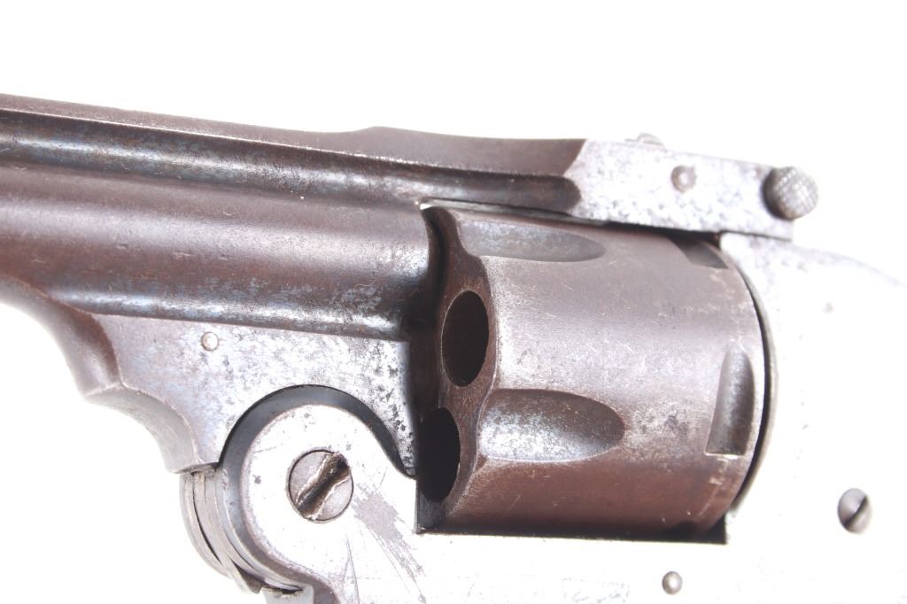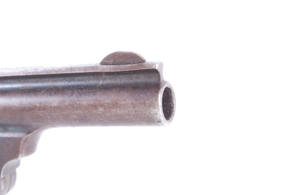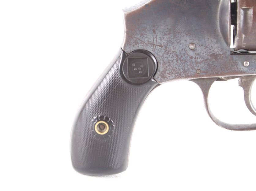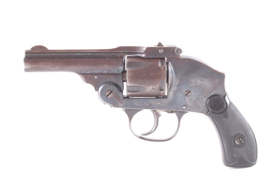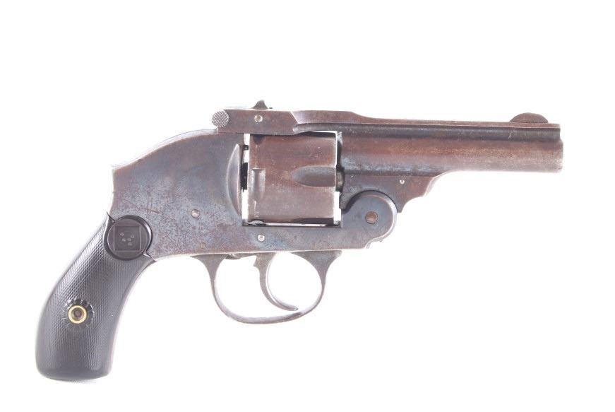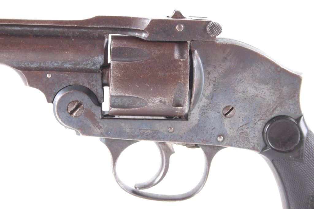 Featured in this lot we have an Eastern Arms Company safety hammerless double action revolver chambered in .38 special caliber and manufactured in the early 1900's. The revolver displays a 3" long round barrel, five shot cylinder, hard rubber grips, top break, and double action trigger. The revolver is marked across the top reading "EASTERN ARMS CO". Mechanically the revolver cylinder shows good timing with a smooth top break and crisp trigger. The pistol shows good condition overall with much of the original blue'd finish retained across the frame and light pitting. It weighs 1lb. Serial Number: 95512. This firearm qualifies as a Curio & Relic firearm, and requires FFL Transfer or NICS Background Check.