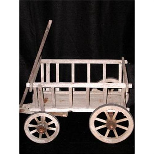 This delightful wooden wagon with rubber afixed to wooden wheels comes from the C.1900 era.Used by the children of Eastern Europe.Wood weathered a light gray from age. Metal bands anchor the undercarriage in spots. Useable as well as an excellent accent piece.