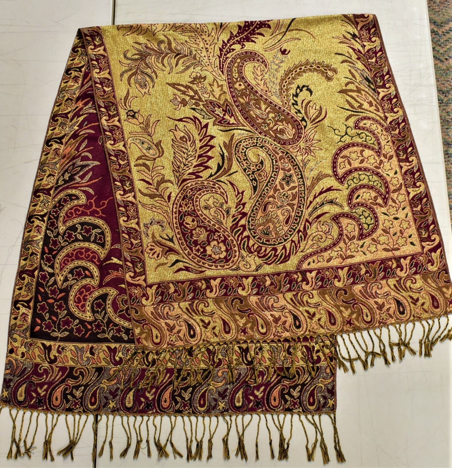 Eastern India Gold Gilt Thread Tapestry, measures 37'' x 74'' which includes the fringe