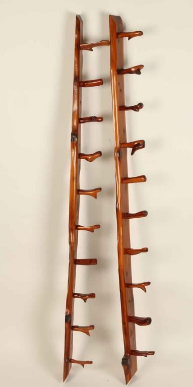 Two long pieces of beautiful red cedar with ten pegs each. Measure 63"l x approx. 4"w. Nice addition to any decor.