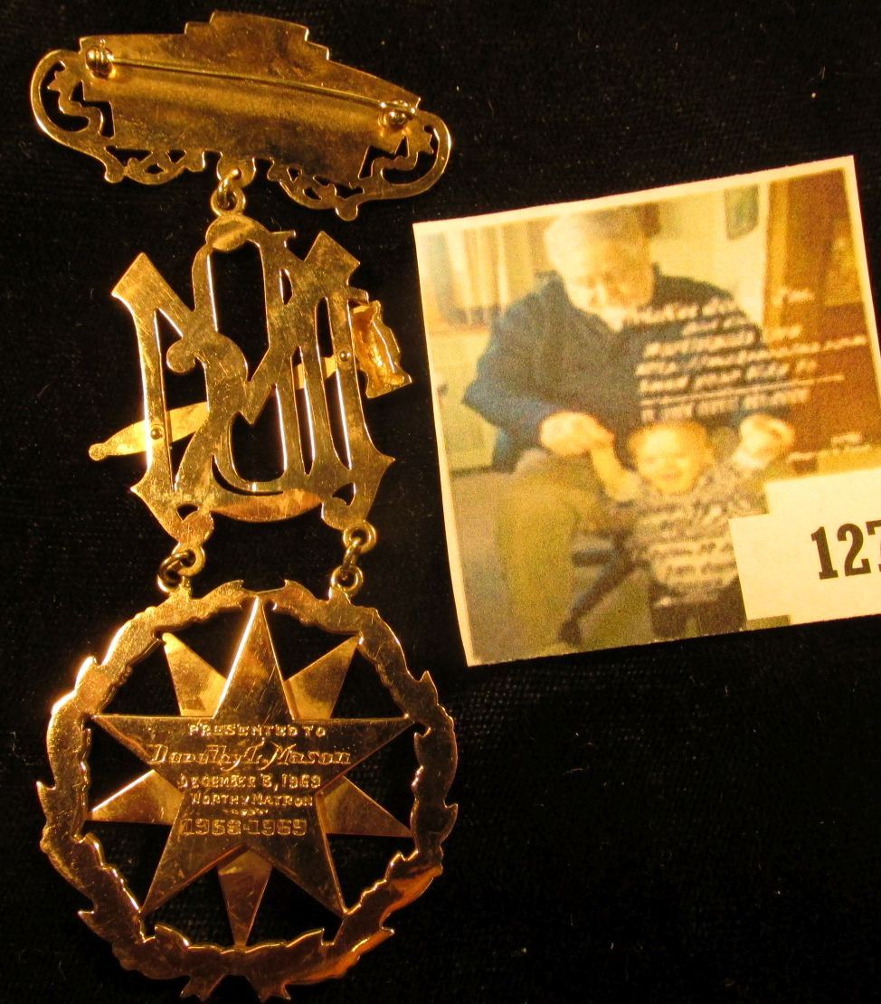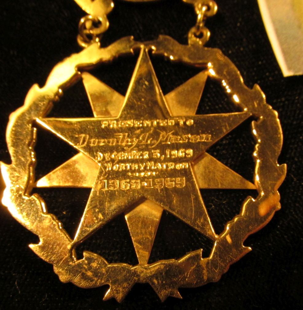 Eastern Star Worthy Matron Lodge Jewel – LARGE OES (Order of Eastern Star) Providence Chapter No. 1 Worthy Matron Lodge Jewel, engraved Presented to Dorothy L. Mason December 3, 1969, Worthy Matron 1968-1969 Holds 10Ka acid, HEAVY, 34.4 g / 22.1 dwt. RARE, these are seldom offered.