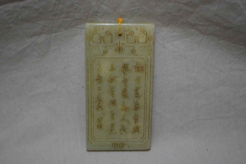 Eastern Turkistan celadon jade plaque, purportedly early 20th century. 1 3/4" x 3 1/2"