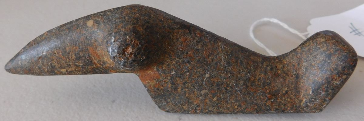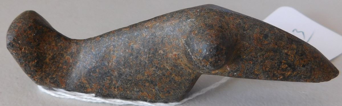 Eastern Woodlands Birdstone, pre-historic item, made of hardstone. Item measures 4.75" x 1.5" x 1". From Randolph County, Indiana. Nice looking birdstone. Condition: Good, see images. Shipping: $15.50.