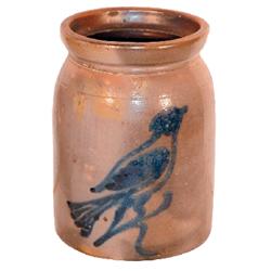 Eastern stoneware hand decorated 2 gal. jar, wonderful cobalt bird on branch, stylized 2 at top, Exc