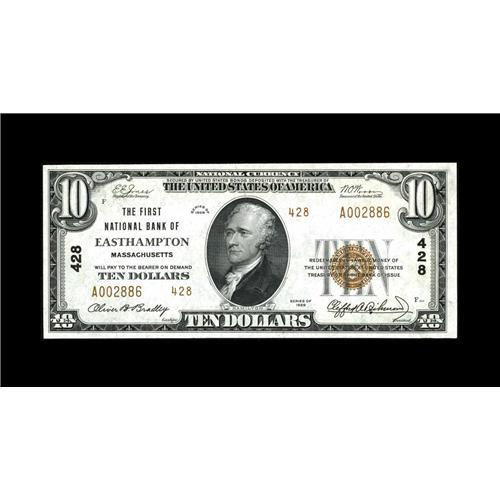 <B>Easthampton, MA</B></I> - $10 1929 Ty. 2 <B>The First NB</B></I> Ch. # 428<BR>A touch of handling limits us from calling this evenly margined note a Gem. A pleasing and original <B>Very Choice Crisp Uncirculated.</B></I>