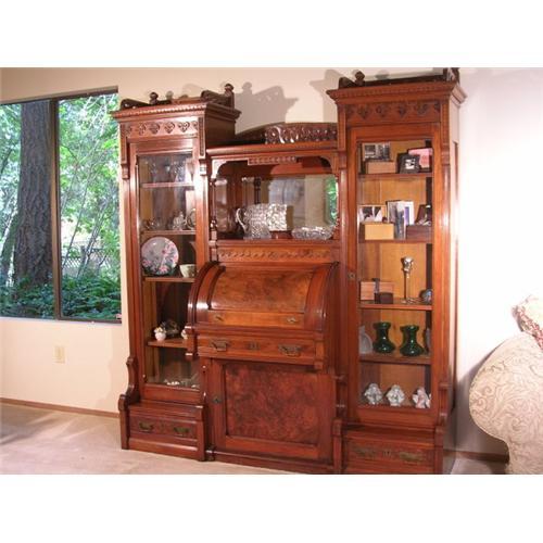 Inside the desk drawer is a card taped to the drawer stating ?Oregon Furniture Manufacturing Co, 208-211 First St. Portland, Oregon from 1883-1903? In addition we found a book which said the Oregon Manufacturing Company in Portland was on First Ave in 1875. The keys are included for the desk, drawers and bookcases. The shelves are removable. This piece has been in one family. We believe it is circa 1880?s. We were not able to move this ...