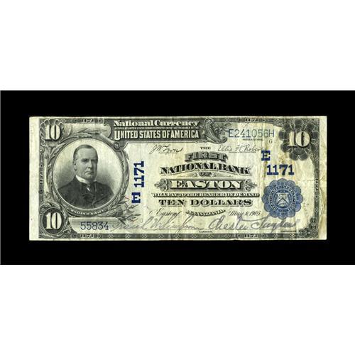 <B>Easton, PA</B></I> - $10 1902 Plain Back Fr. 624 <B>The First NB</B></I> Ch. # (E)1171<BR>A most pleasing and original <B>Very Fine.</B></I>