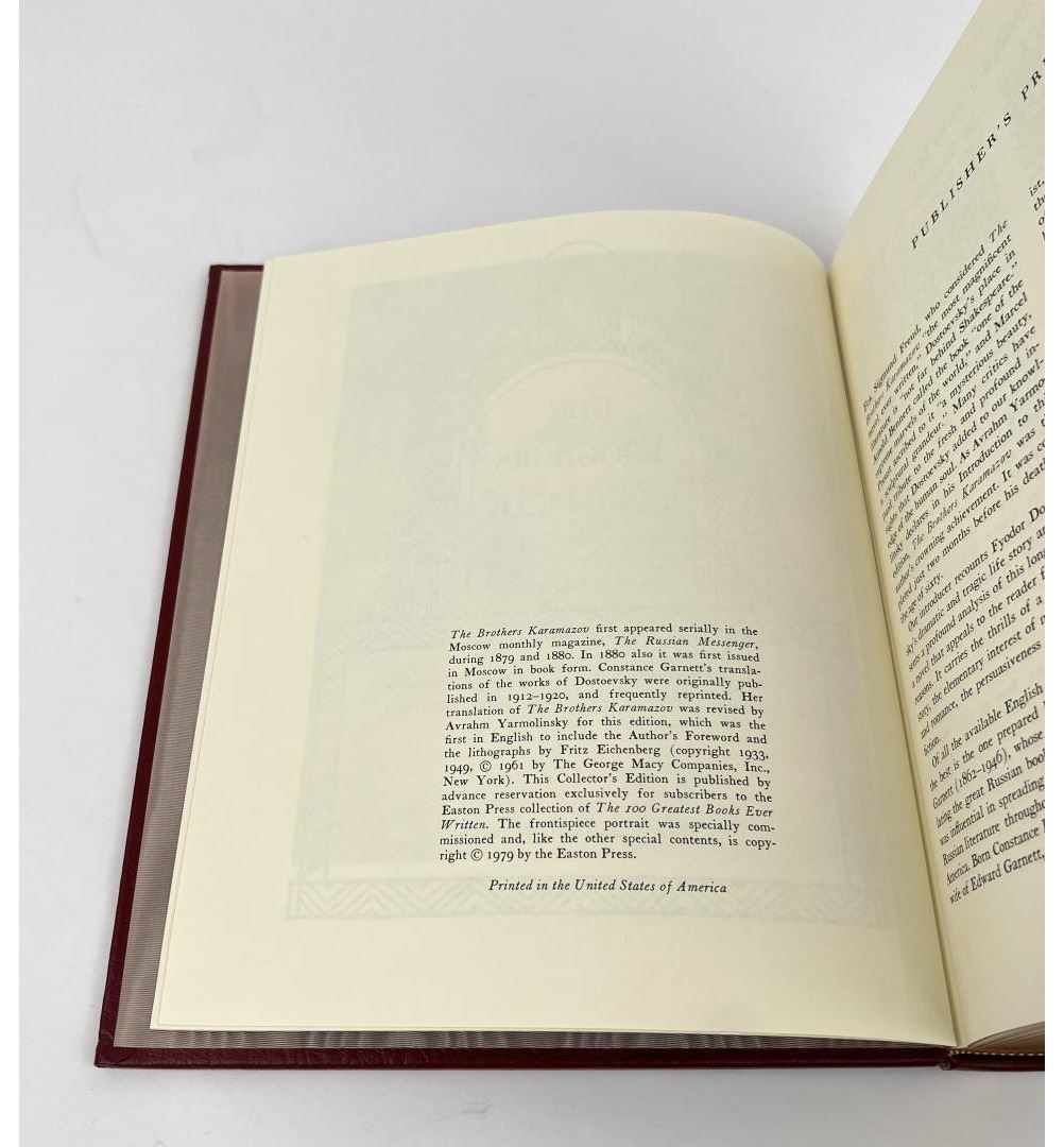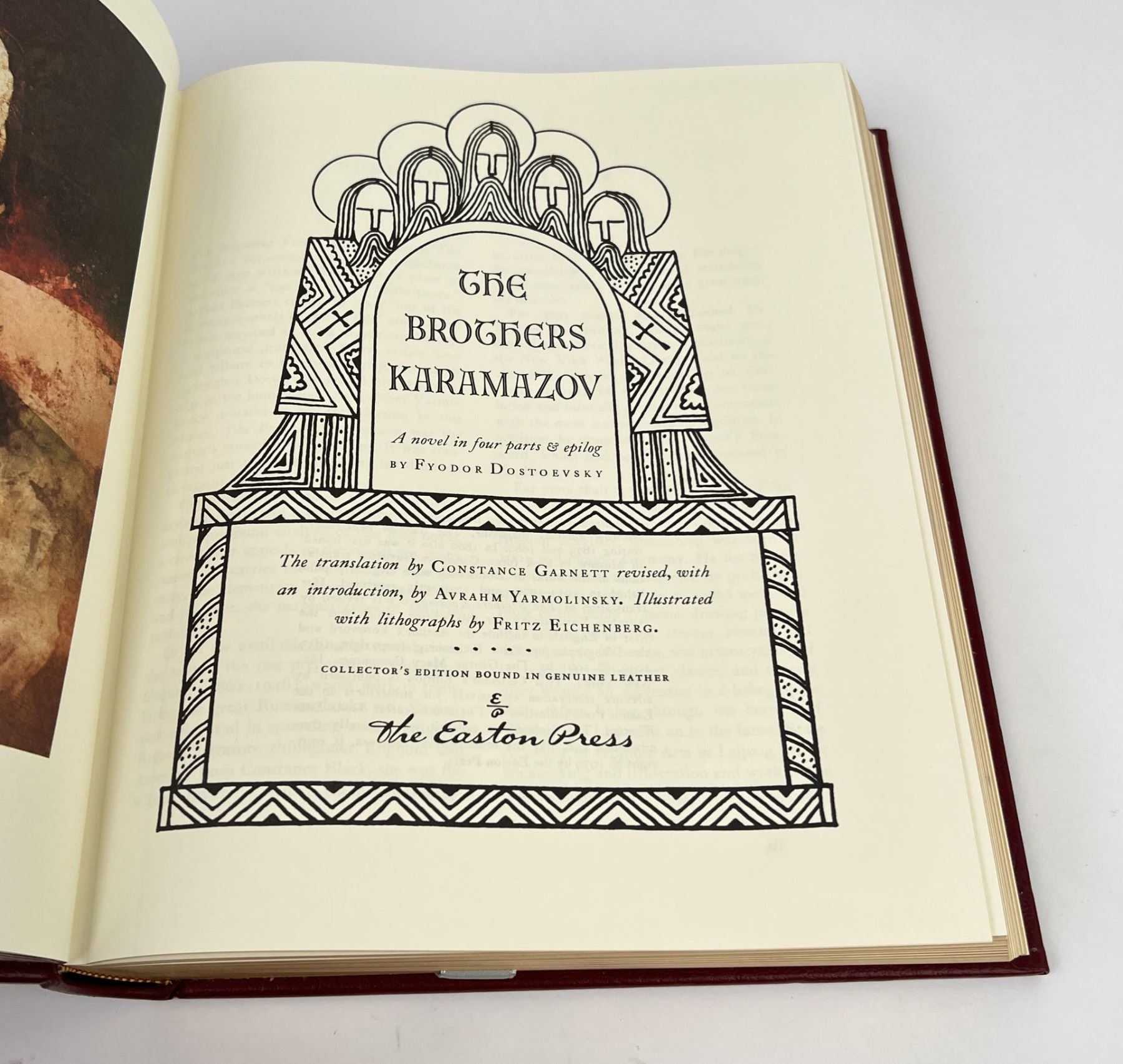 A novel in four parts & epilog by Fyodor Dostoevsky. The translation by Constance Garnett revised, with an introduction, by Avrahm Yarmolinsky. Features lithograph illustrations by Fritz Eichenberg.