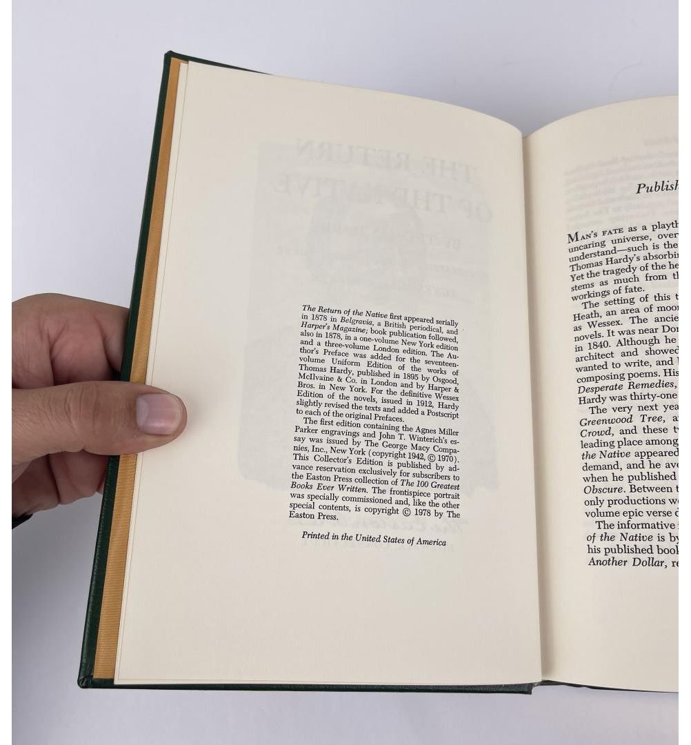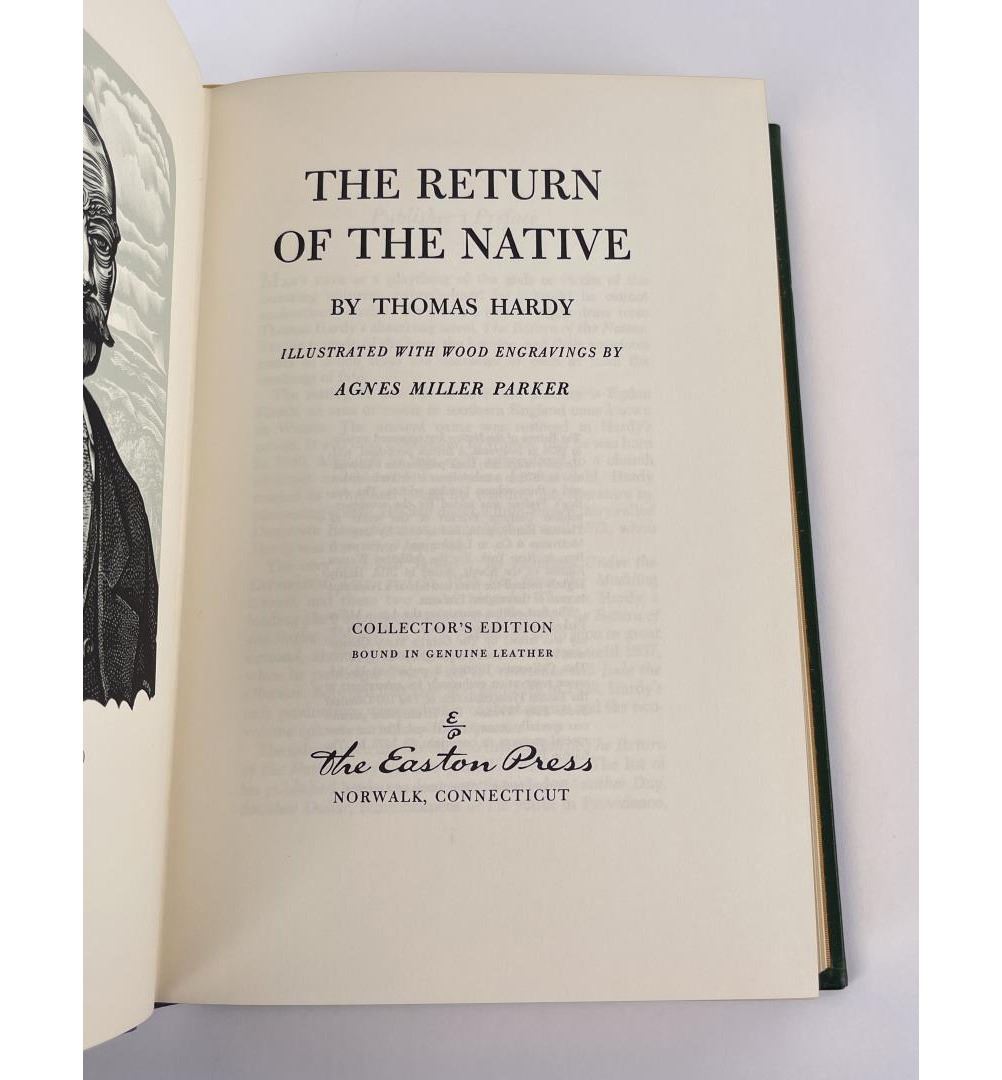 1981 collector's edition, beautifully bound in leather with gilt edged pages including ribbon bookmark. 'The Return of the Native' is by Thomas Hardy and is illustrated with wood engravings by Agnes Miller Parker.