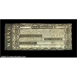 Eastport, ME- Passamaquoddy Bank $5 Dec. 1, 1824 G32 Wait 21A high grade Perkins Plate example. Extremely Fine. Important notice: We expect to be auctioning lots at the rate of 200-250 per hour. Sometimes eBay Premier live bid software cannot keep up with that pace, so we strongly recommend that you place a realistic proxy bid now as insurance to avoid disappointment. Also please note that all Heritage/CAA lots purchased through eBay Premier carry a 20% Buyer's Premium. Please make sure you read the Terms and Conditions.