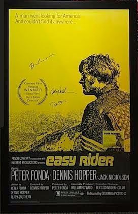 autographed movie poster by Dennis Hopper, Peter Fonda, Jack Nicholson. .This item comes with a Certificate of Authenticity from a third party authenticator. This Certification of Authenticity does not imply that the item will be certified by any other rival authentication companies. The accompanied certification is the only certification the auction company can confirm. These items are being sold as collectable pieces and there is no guarantee that this item can be resold on any online marketplace. Each of these companies has their own policies and politics.