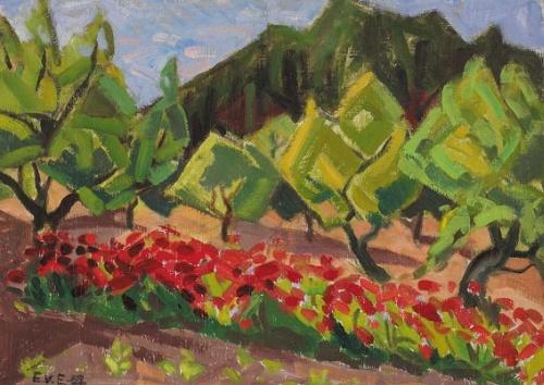 OLIVE GROVE signed in monogram and dated [1959] lower left; inscribed on reverse oil on canvas <BR>46 by 62cm., 18 by 24.5in.