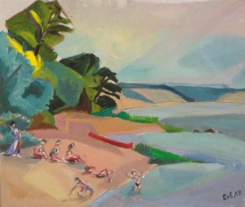 SUNBATHERS signed in monogram and dated [1949] lower right; inscribed on reverse oil on canvas <BR>46 by 53cm., 18 by 21in.