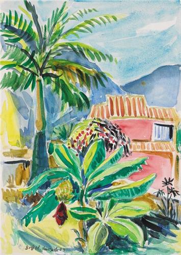 HOUSES AND TROPICAL GARDENS, VENEZUELA (THREE WORKS) two signed in monogram; one inscribed "Venezuela" and dated [1983] lower left; inscribed on reverse watercolours, unframed <BR>41 by 30cm., 16 by 12in. The other two measure 12 by 16 inches and 14 by 10