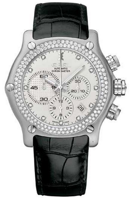 Model: 1215719 - CASE = [Material:Stainless Steel & Diamonds], [Case Diameter:44], [Bezel:Stainless Steel & Diamonds], [Case Back:Solid], [Water Resistant:100 Meters/330 Feet], [Crystal:Scratch Resistant Sapphire], DIAL = [Color:White], MOVEMENT = [Type:Automatic], [Crown:Screw Down], BAND = [Clasp:Deployment Buckle], [Type:Black Leather], (Usually ships in 1 to 2 business days.)