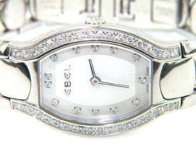 Ebel Stainless Steel Diamond Watch. The total watch's weight is 52.8 grams. The total diamond weight: 0.75 cts. G color, VVS clarity. The measurements of watch head is 20 x 21 mm and 5 mm thick. The length of watch: 6.25". water Resistant. swiss made. Chain is 11 mm wide.