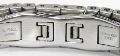 Ebel Stainless Steel Roman Numerals Watch. The total watch's weight is 60.6 grams. The measurements of watch head is 19 x 22 mm and 6 mm thick. The length of watch: 6.75". swiss made. Chain is 11 mm wide.