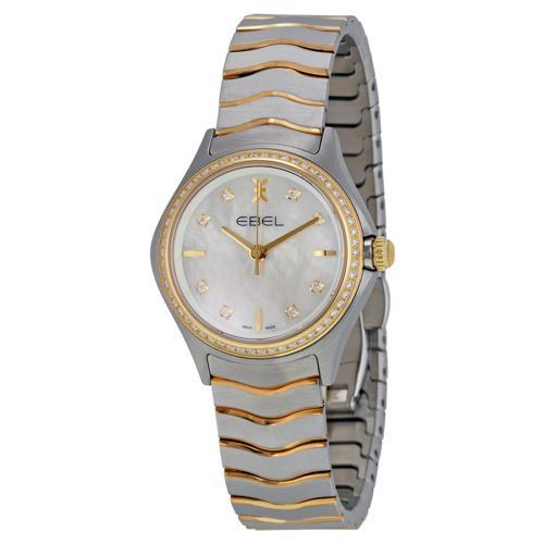 Ebel Wave Mother of Pearl Diamond Two Tone Ladies Watch 1216198Product DetailsProduct SKU :W-1216198Color:WhiteWatch Brand:EbelWatch Series:WaveFeatures Bezel:Fixed Bezel Set With DiamondsWatch Model No:1216198Case Material:Stainless Steel And 18kt Yellow GoldDial Color:Mother Of PearlRestocking Fee:NoAge:Modern (2000 Present)Warranty:Non Factory WarrantyMovement:QuartzDisplay:AnalogBand Material:Yellow GoldCase Diameter:30 Mm