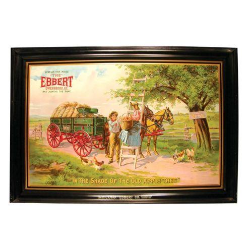 Ebert Wagons Self Framed, Tin Sign. Entitled In the Shade of the Old Apple Tree. 1906 All original and in near mint condition. 37 1/2 X 25 1/2 inches.