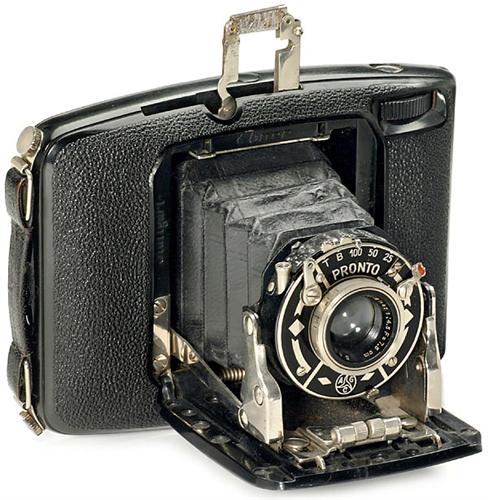 "Ebner Model 303" (4,5 x 6), Black, 1934 Albert Ebner & Co., Stuttgart. With Ebner-Anastigmat 4,5/7,5 cm, Pronto shutter. Attractive streamline bakelite camera.<Br>