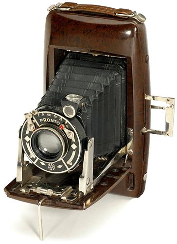 "Ebner (6 x 9) Model 341" (Brown!), 1934 Albert Ebner & Co., Stuttgart. With Ebner-Anastigmat 4,5/10,5 cm, Pronto shutter, streamlined bakelite camera.<Br>