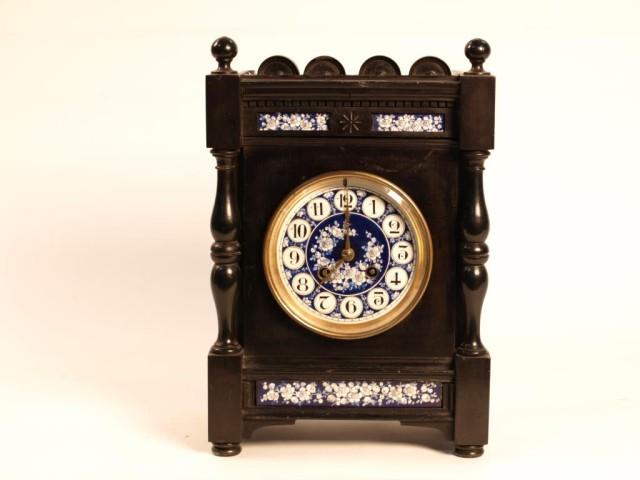 inserts and dial with hand painted flowers. Measures 13" tall X 9 " wide X 6" deep.