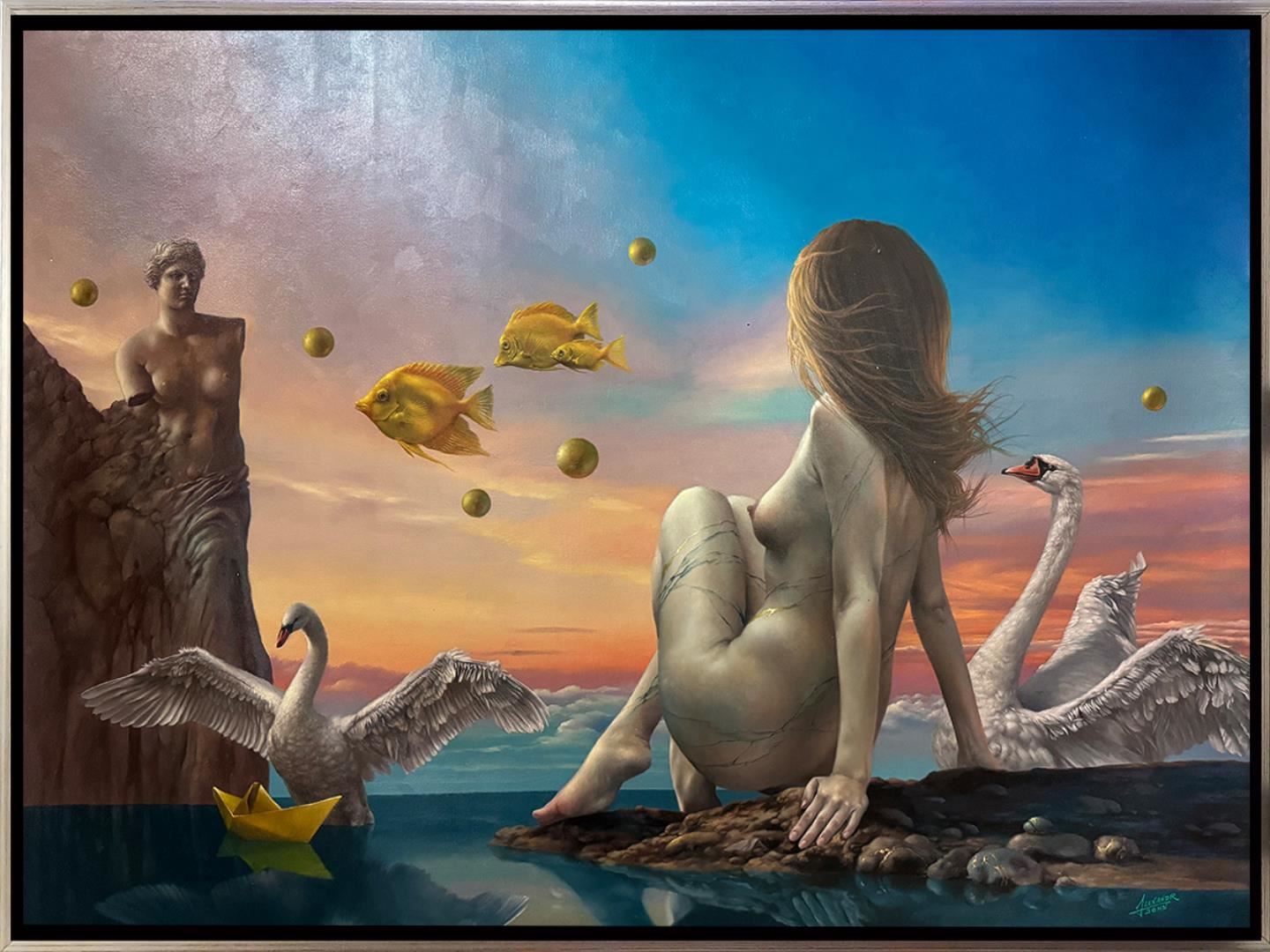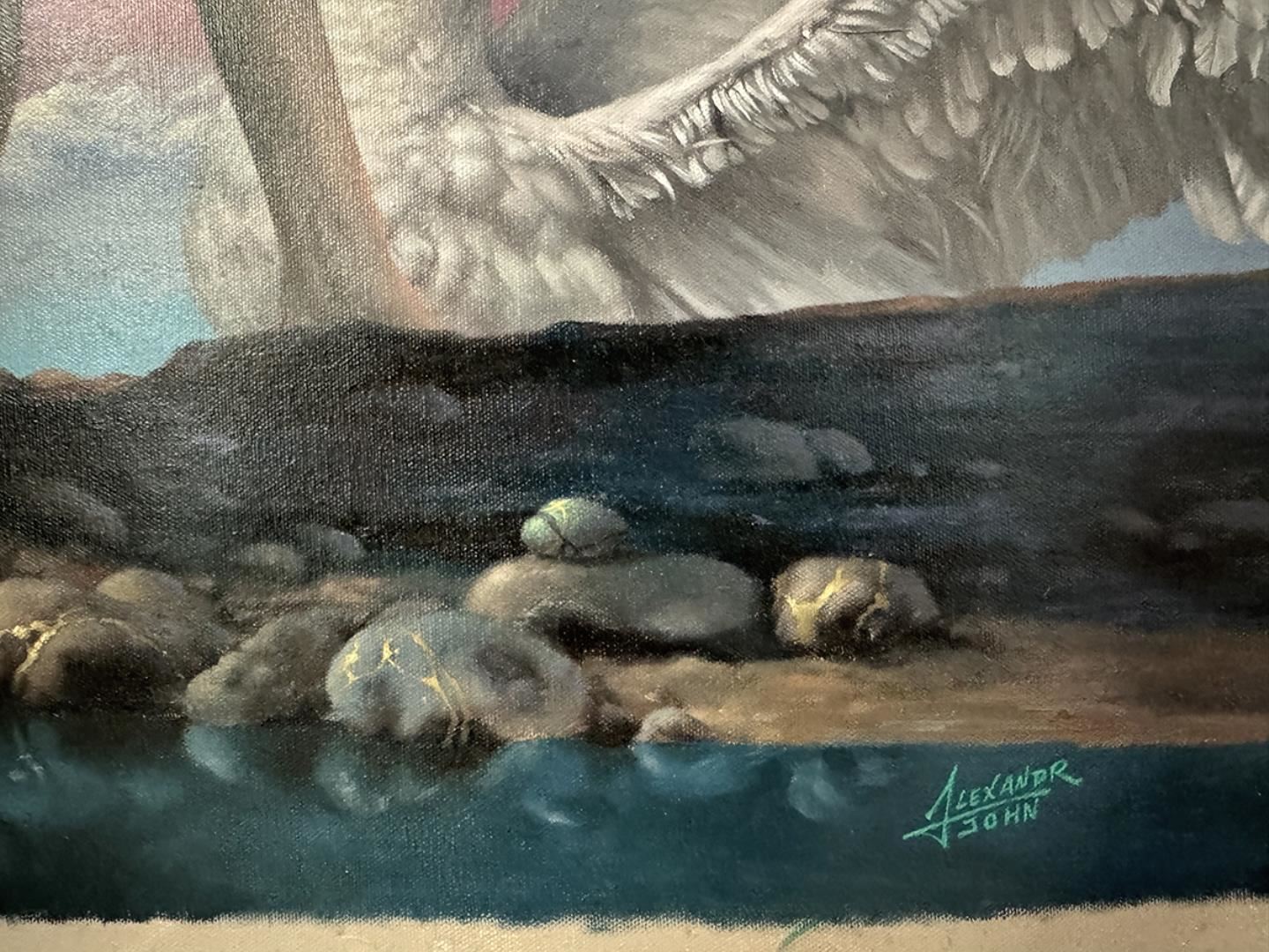 Amazing original oil on canvas by Alexander John. Hand signed by artist. This 42x32" artwork comes beautifully framed and ready to hang