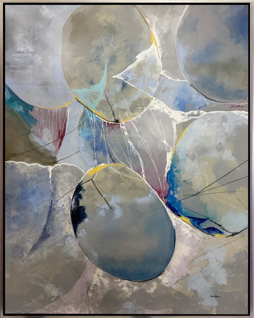 This Gorgeous original acrylic artwork, a striking blend of colors and forms is created on canvas and hand-signed by the artist, it comes framed and ready to hang. Art size 48x60" framed size 50x62"