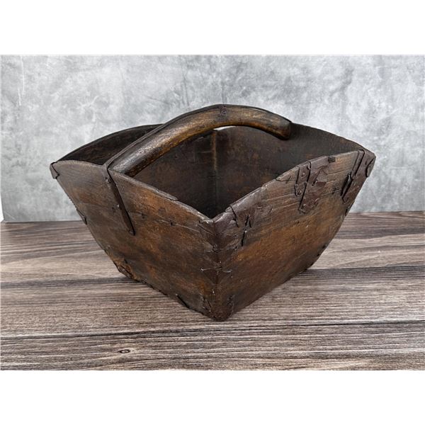 Antique Chinese Wood Rice Bucket Basket715 - Antique Chinese Wood Rice Bucket Basket