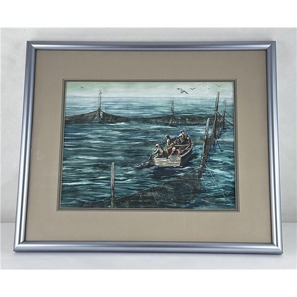Title is The Doryman. 25" by 29" framed. A native from Montana, Carol Novotne has been a fine artist for over thirty years. Her post impre...