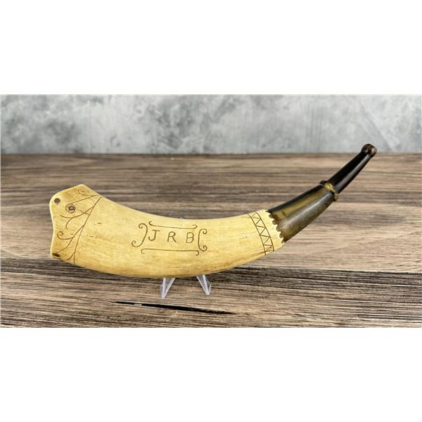 Nice horn. Scrimshawed as shown. 9 3/4" long.