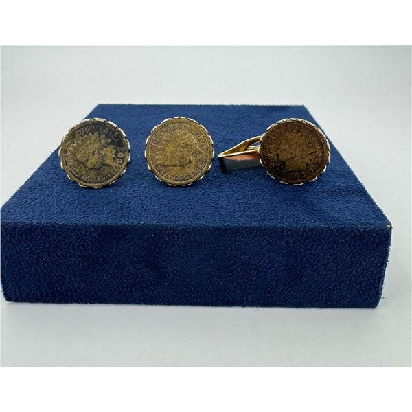 Indian Head Penny Cufflinks Tie Bar374 - Indian Head Penny Cufflinks Tie Bar