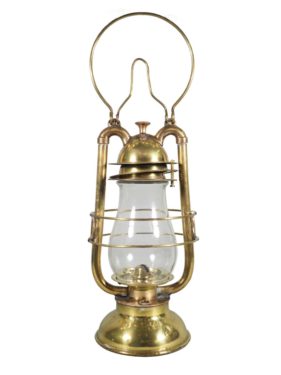Eclipse Brass Fire Lantern. Clear globe. Dent in base otherwise good condition. 14 1/2 inches tall.