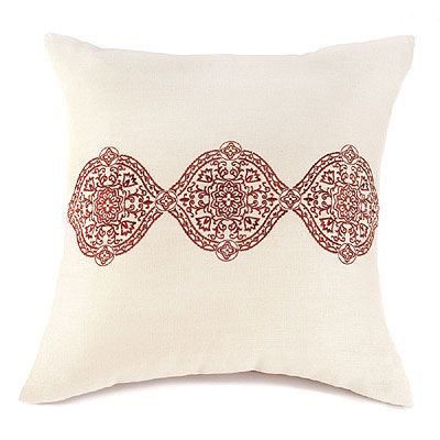 Ecru And Spice Throw Pillow **|**|** Lounge in luxury with this beautiful ecru and spice pillow. Striking the perfect harmony between soft neutral colors and rich, intricate embroidery, these cushions instantly add a splash of exotic flair to your seating area or bed. Removable cover with zipper closure. Item weight: 1.2 lbs. 18 x 18" high. 100% Polyester. 1 EA"