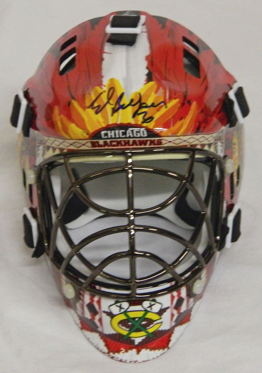 Ed Belfour signed Chicago Blackhawks Franklin mini hockey goalie mask. Item comes with a Schwartz Sports Memorabilia tamper-proof numbered hologram and Certificate of Authenticity which can be verified online.