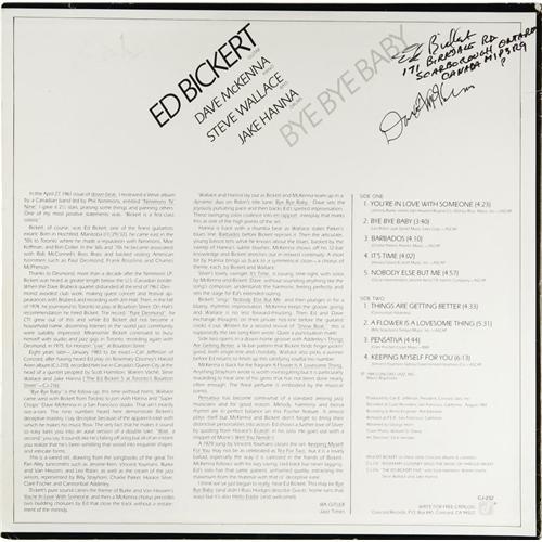 <B>Ed Bickert and Dave McKenna Signed Record and Photo Group.</B></I> Canadian guitarist Ed Bickert is joined by pianist Dave McKenna in this lot. The group includes: "Bye Bye Baby - Ed Bickert" (Concord Jazz CJ-232) with its cover signed by Ed Bickert and Dave McKenna (and a signed photo of McKenna).<BR><BR><b>Shipping:</b> Recordings (<a target="_blank" href="http://www.heritageauctions.com/common/shipping.php">view shipping information</a>)