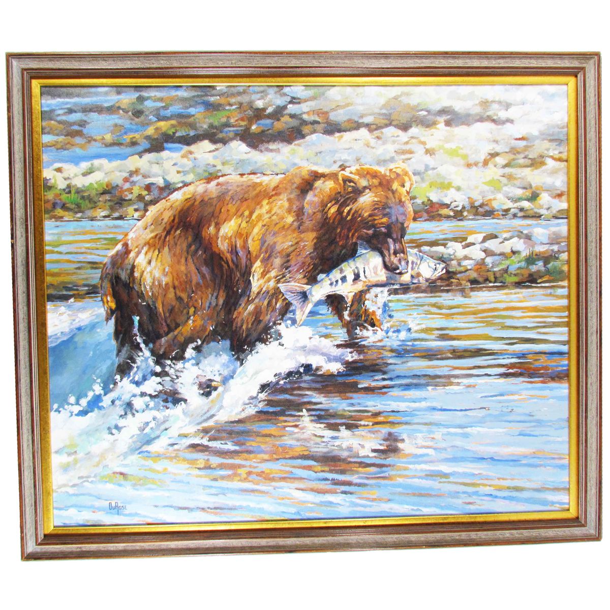 Ed Durose Original Oil on Canvas Painting. Entitled "Salmon Fishing". Excellent condition. 30 X 36 inches.